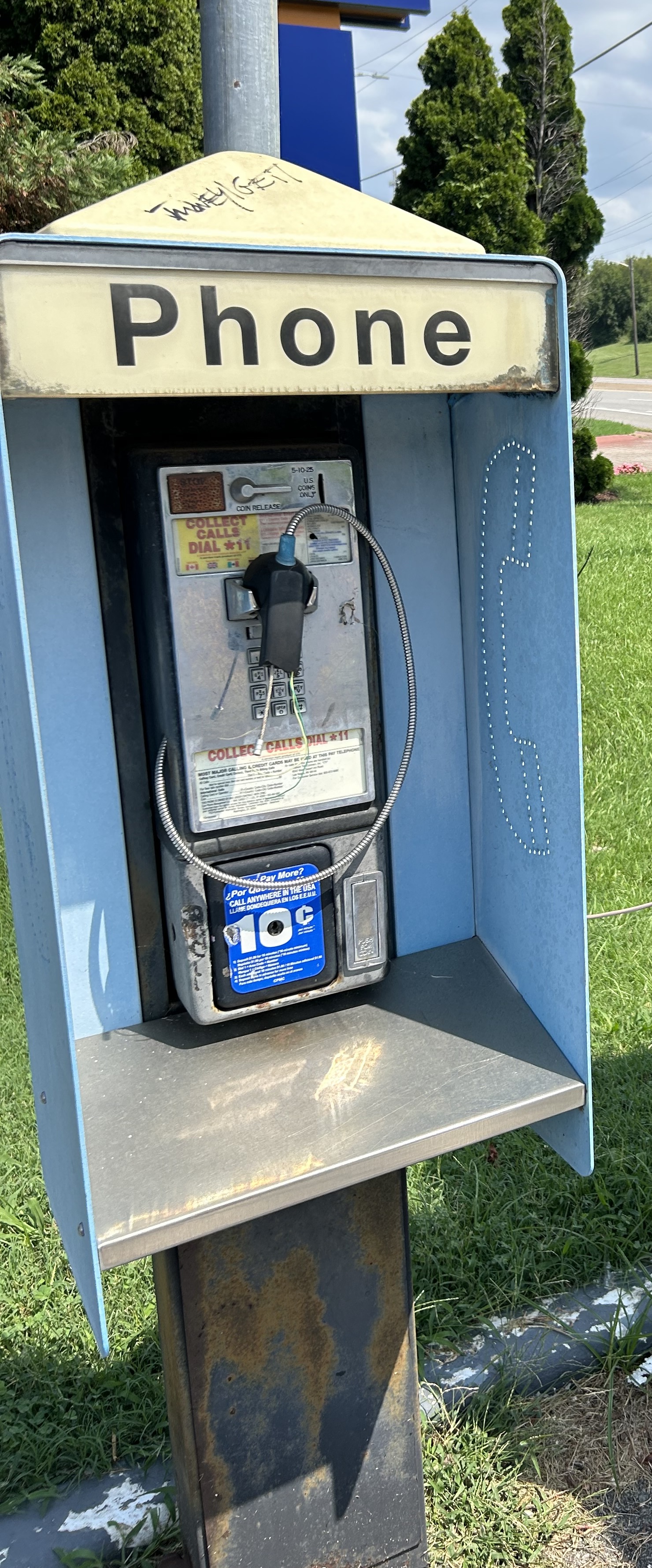 Phone booth at the Lake Ocoee Inn & Marina in the Cherokee National Forest. Unfortunately the phone has been disconnected.
