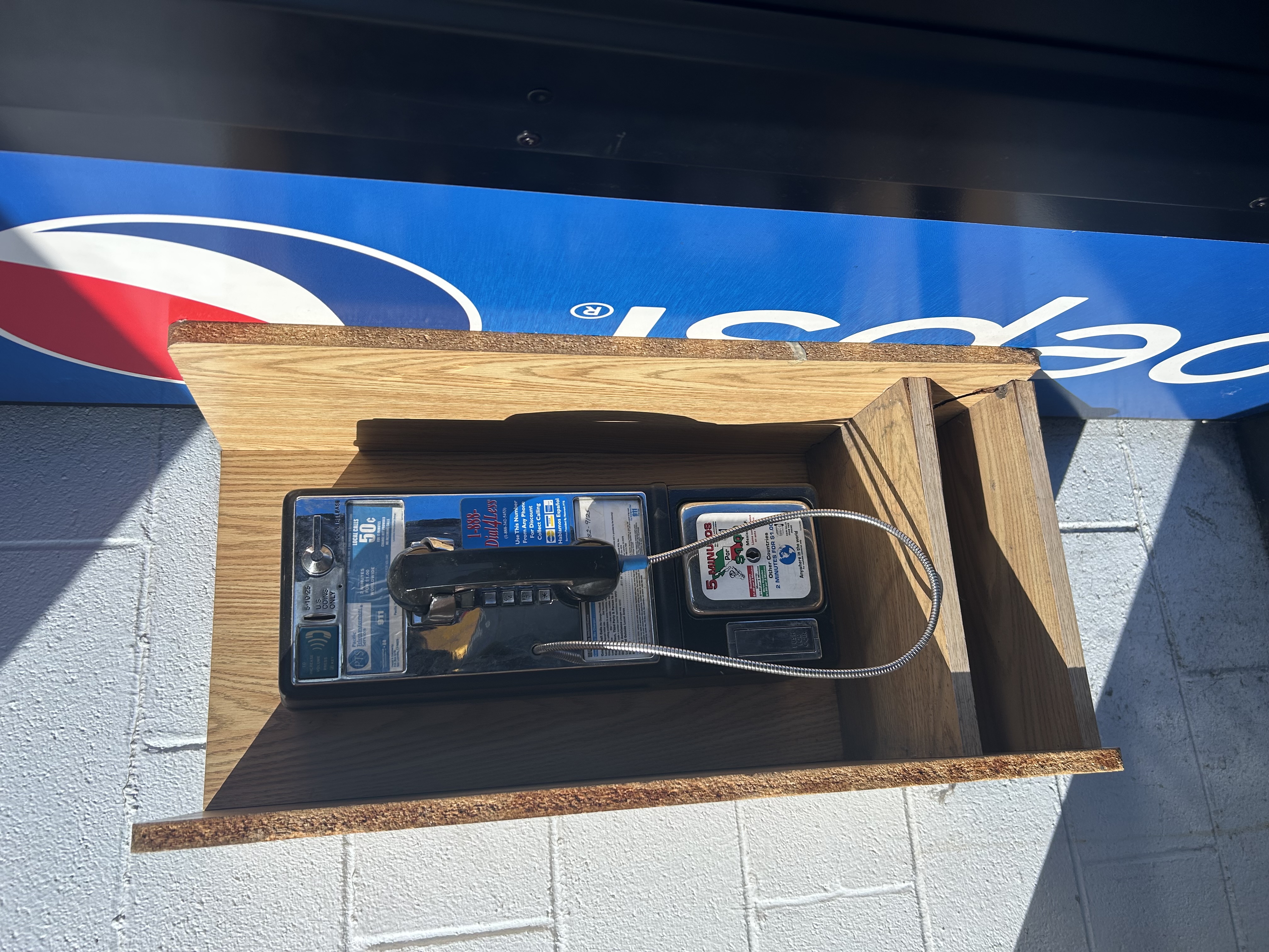 This payphone is at the side entrance to the Home & Pharmacy section. Its number was 615-382-9125.